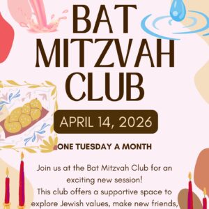 Bat Mitzvah Club The Bat Mitzvah Club continues its journey on April 14th ... 14 Apr 4:30 pm - 6:00 pm