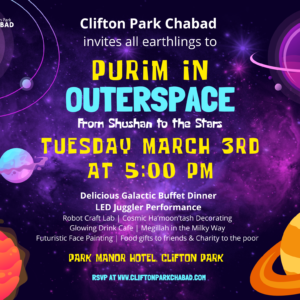 Purim in Outerspace Calling all Earthlings! 🚀Clifton Park Chabad invites you to Purim ... 03 Mar 5:00 pm