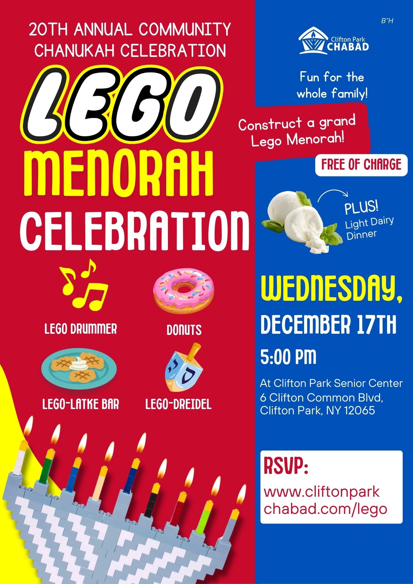 Bring the whole family for a hands-on Chanukah experience as we build a giant Menorah entirely out of LEGO bricks!